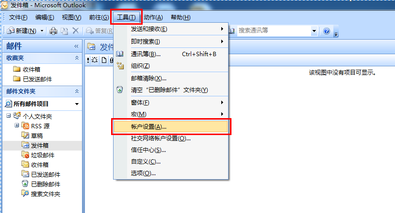 2、启动Outlook Express。从菜单中选择“工具”----“帐户设置”