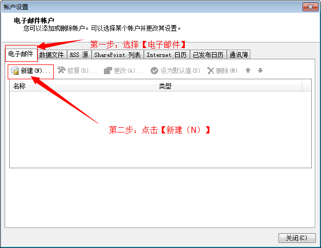 3、在弹出的“帐户设置”窗口选择“电子邮件”----“新建”,继续